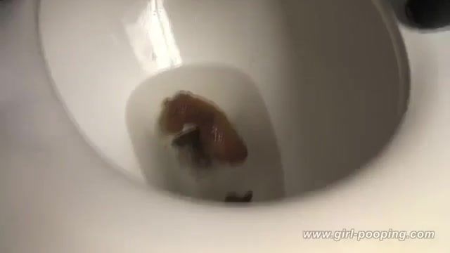 Japanese girl decides to poop a big one over toilet. She spreads her legs wide opened.