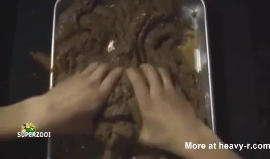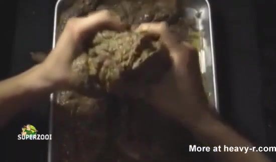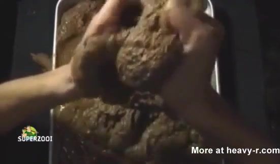 Japanese teen plays with a big pile of poop from a metallic plate.