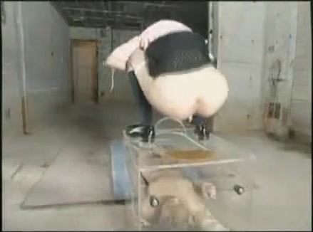Japanese girl sits naked under a plastic table while her best friend is pooping on top of it.