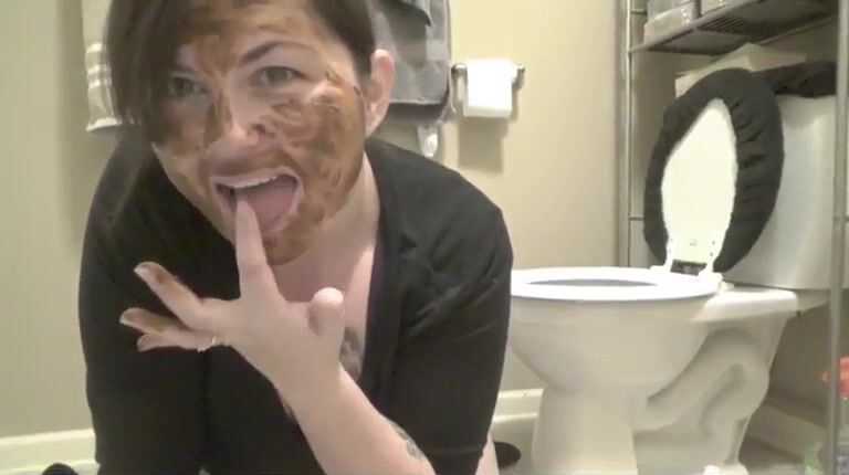 Girl takes a huge shit in her mouth