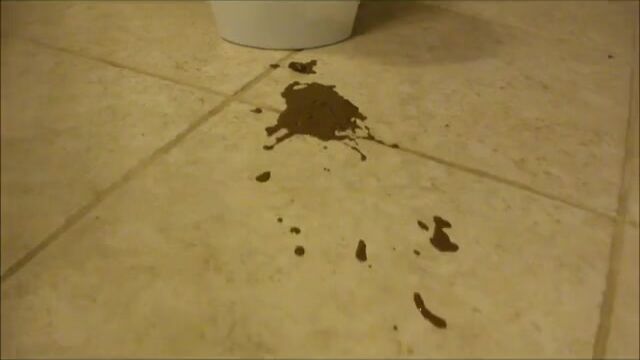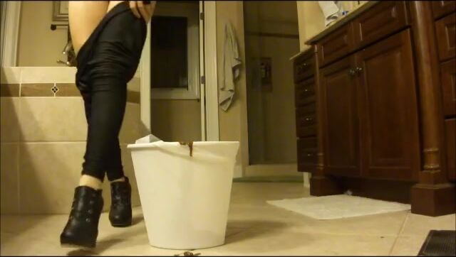 Lady in high heels fills bucket with diarrhea
