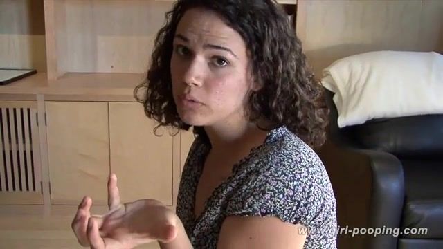 Sexy latina with dark curly hair is pooping while she sits naked on a homemade toilet.