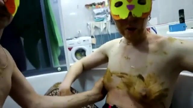 Lesbian girls use sex toys to masturbate and they smear a lot of poop on their naked bodies.
