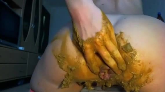 Two lesbian girls are having fun with scat in the bedroom. One of them is pooping in her panties…while the other smears that shit on her ass.