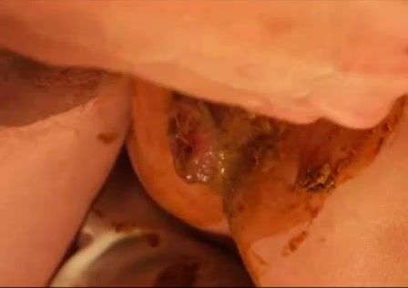 Younger couple are having fun in the bedroom. They are doing sixty nine position…the girl takes a shit on his chest and face. Nice.