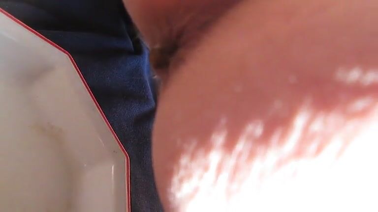 Light hairy ass lady poops in closeup