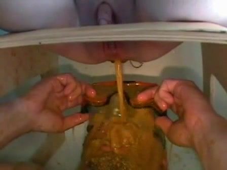 Mature couple are having fun with scat in the bedroom. The guy lays down on his back on the floor while his lover is pooping liquid scat on his face…nice.