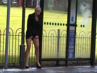 Amateur blonde girl decides to pee in a public place. She couldn't find a public bathroom in time.