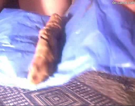 Sexy girl is working on a webcams website. She's pooping a long turd on a blue plastic bag.