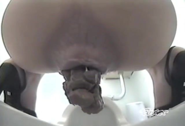Japanese babe sits on her knees half naked. She's pushing a very big turd from her tight ass.