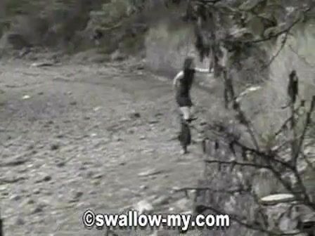 Lucy shitting outdoor in the forest