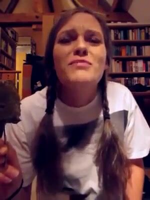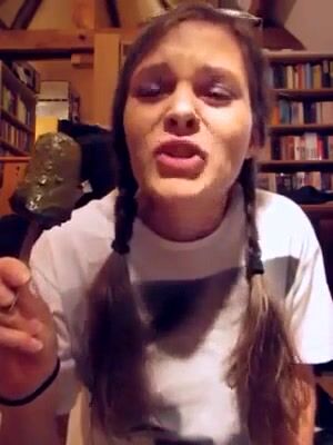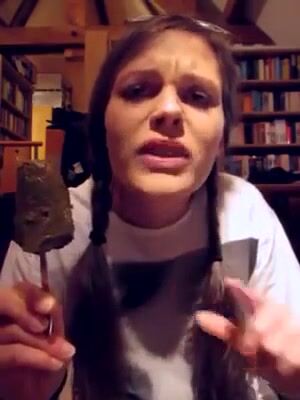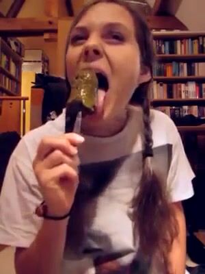Lunatic cute chick eats a scatcicle