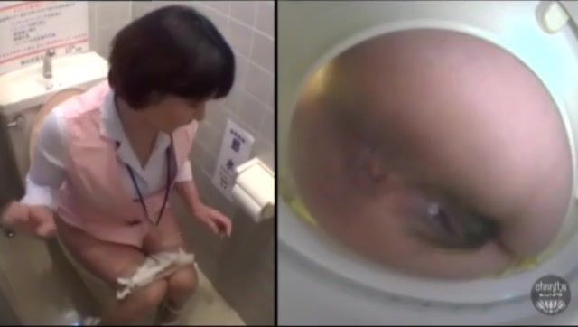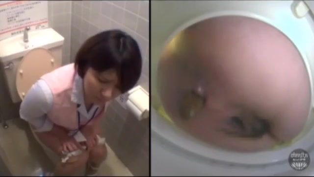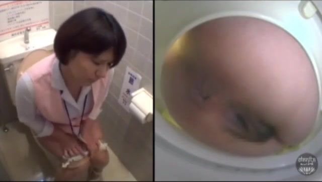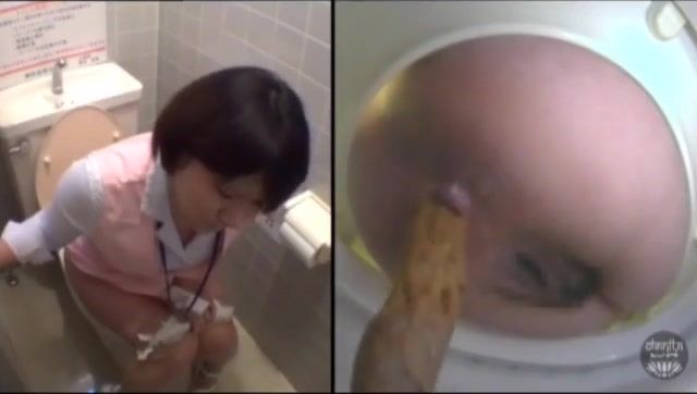 Brunette maid is wiping her dirty butthole after pooping in a public bathroom. Awesome.