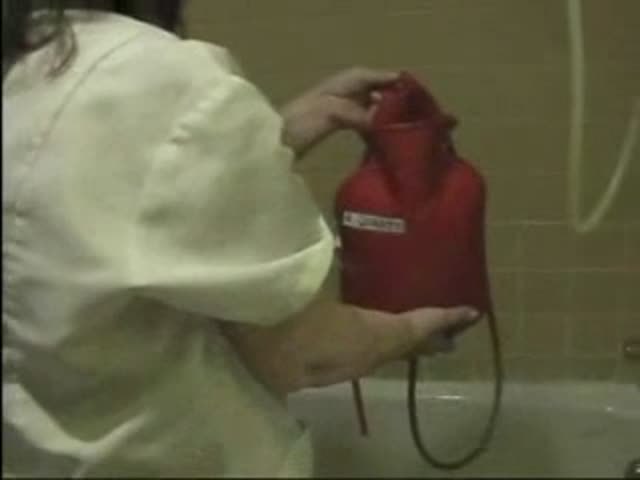 Hot nurse mistress giving enema to her male slave. He starts shitting liquid poop all over the floor after that.