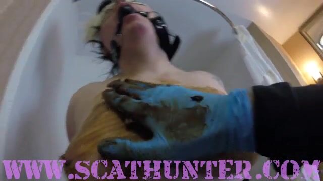 Horny hairy tattooed babe smearing shit