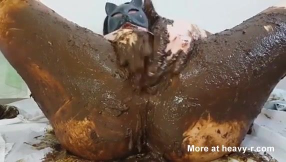Masked teen covered her entire body with brown shit. She always wanted to masturbate in unique way.
