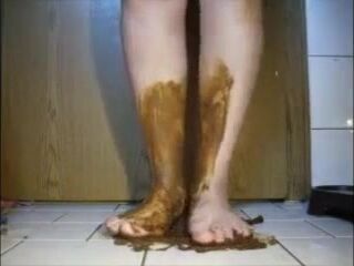 Mature bbw shitting and smear it on feet
