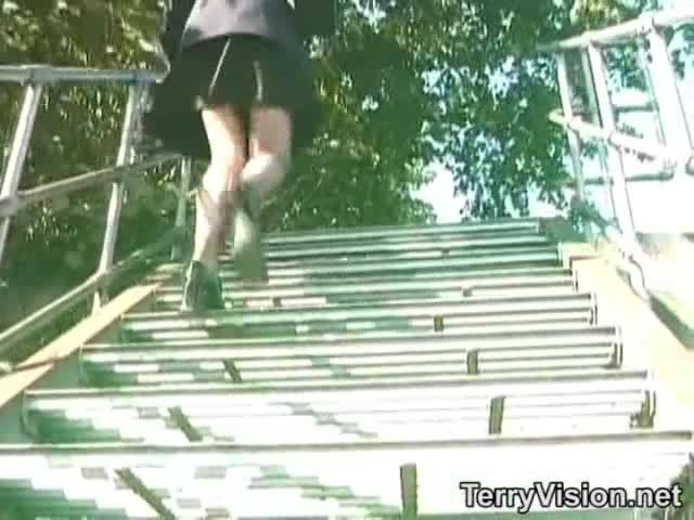 Mature secretary that's wearing a tight black dress is peeing outside her works place.