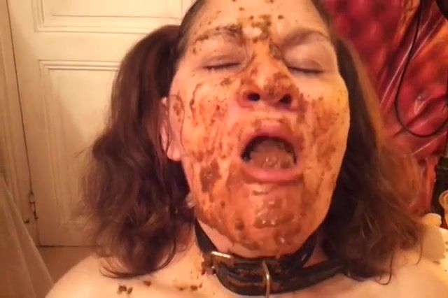 Mature slut paid by one of her clients to take a brown pile of poop in her opened mouth.