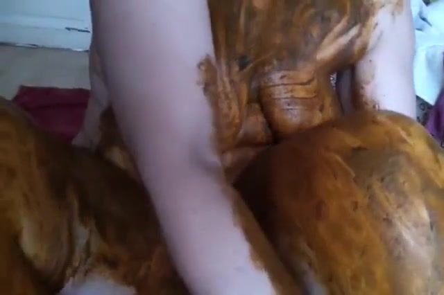 Mature woman rubbing fresh shit on her naked body. She's masturbating with shit in front of her boyfriend.