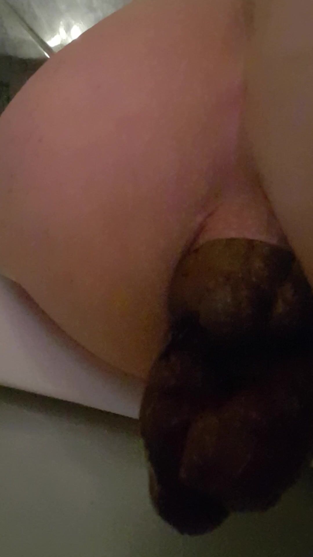 Messy huge turd coming out of tight butt hole