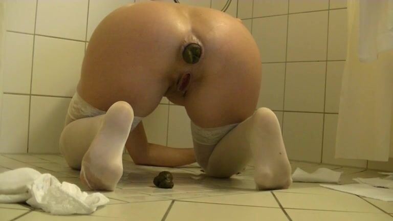 MILF in white stockings pooping on the floor