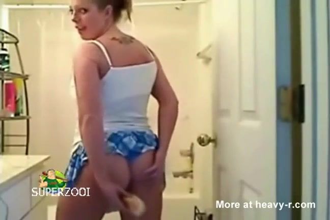 Milf spreads her butt cheeks wide opened so she can easily poop on bathroom floor.