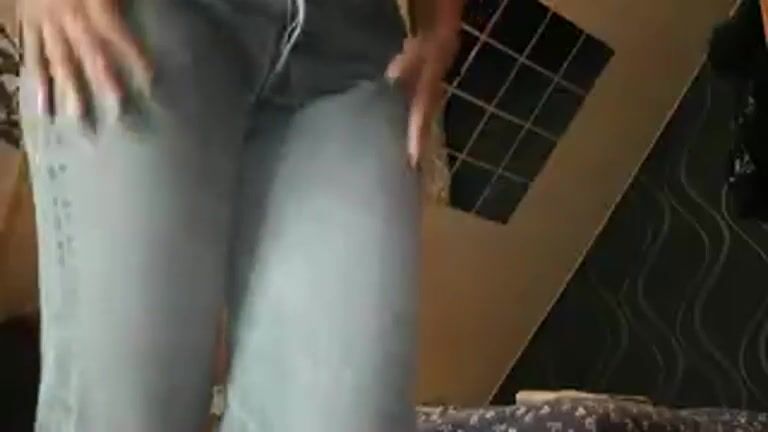 Nasty babe pissing and poping in her lovely jeans