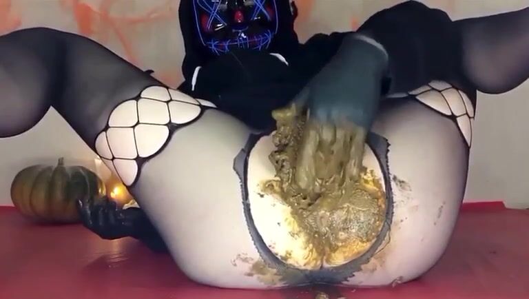 Nasty Halloween slut smearing in solo