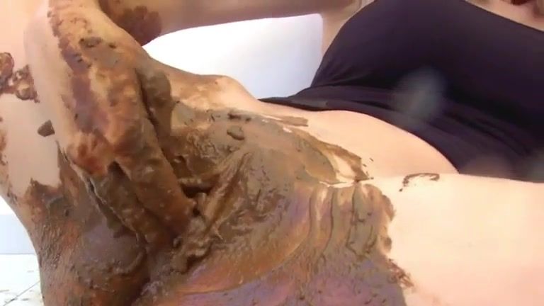 Naughty blonde covered entire body with brown shit. Nasty scat masturbation that ends with a real orgasm.