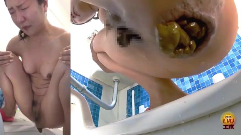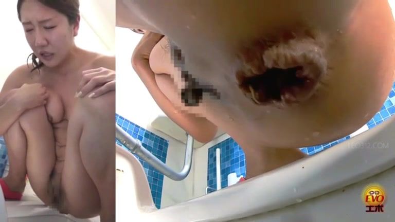 Natural japanese girl was caught pooping in public toilet where a hidden camera is installed.