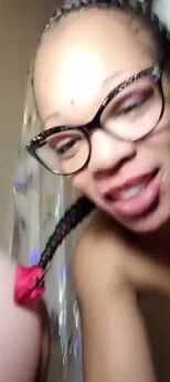 Nerdy girl playing with ass and shit