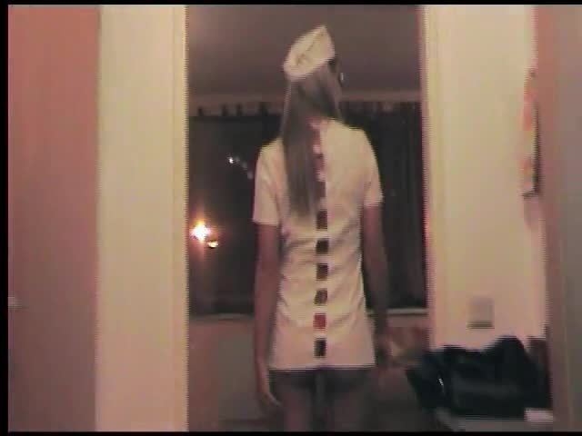 Teen nurse shitting on the floor. She's wearing a white outfit.