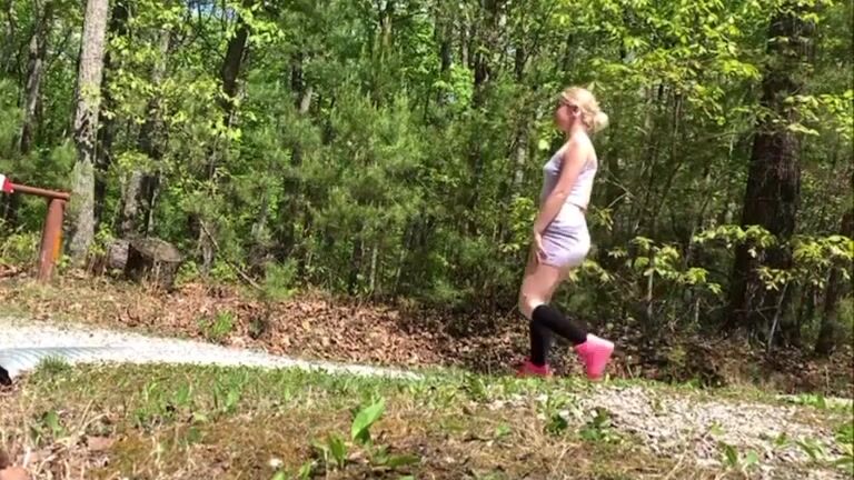 Girls pooping outdoor