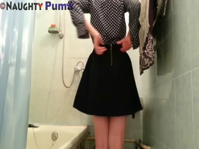 College girl shits in pink panties. Great under skirt view.