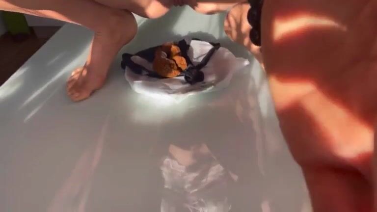 Girls pooping indoor