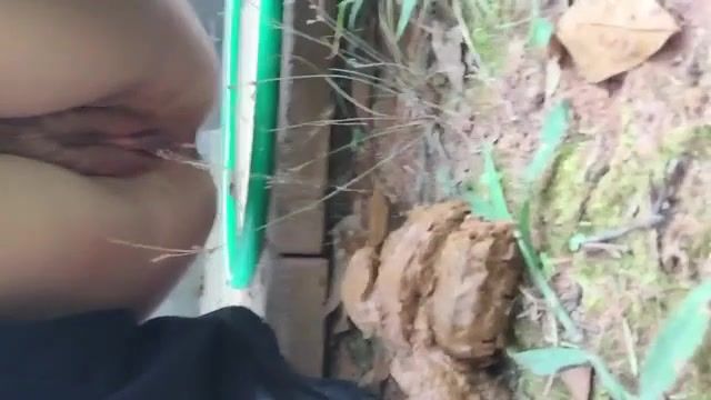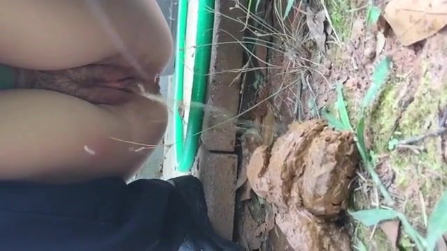 Teen girl is peeing on top of a big pile of poop. Nice.