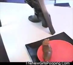 Blonde babe dropped the perfect turd on a red plate. She did that while she records her asshole in close up.