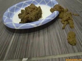 Pierced babe is peeing and shitting on a white plate. She records everything in close up.