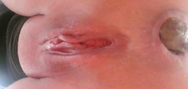 Pink pussy lady pooping closeup