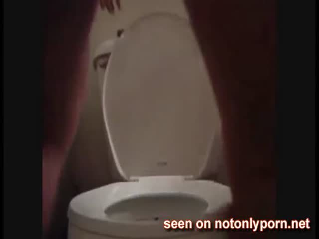 Young girl playing with her sexy ass while she's shitting in toilet.