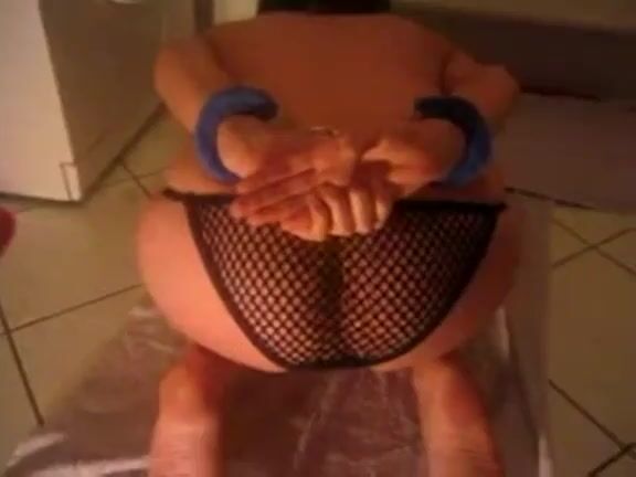 Poop in net panties while handcuffed