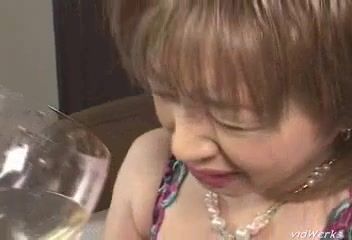 Sexy brown haired girl drinks fresh piss from a glass. She spreads her butt chicks wide opened after that so we can see her pussy and asshole better.
