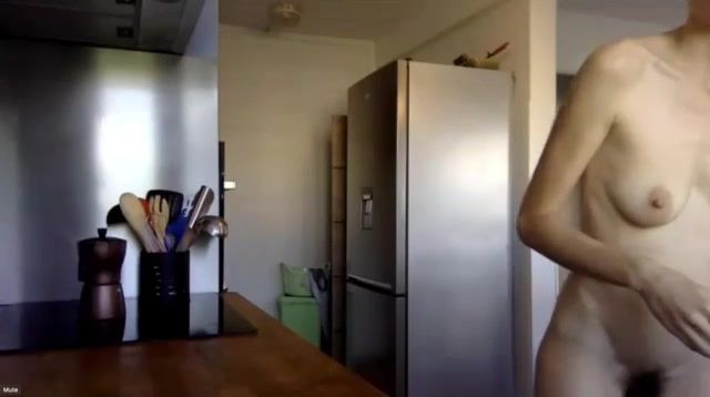 Hot babe sits naked on her knees as she's pooping a lot on bathroom floor.