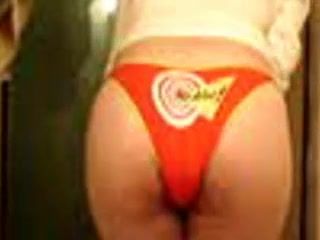 Sexy teen is shitting in her orange panties while she slowly moves her petite ass around.