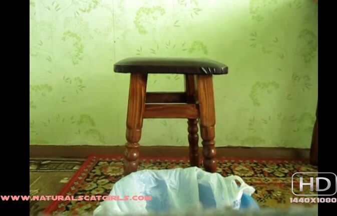 Pooping into a plastic bag from a chair