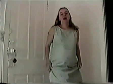 Pregnant lady that's wearing black lingerie is trying to poop on the floor. She's farting loud in the same time.