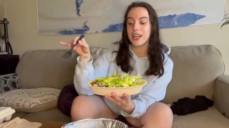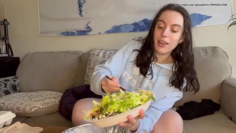 Pretty ass brunette gal pooping in the living room