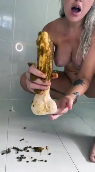 Pretty busty blonde babe with dirty dildo