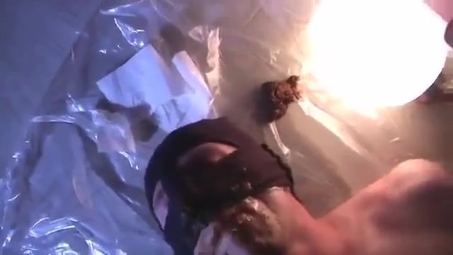 Princess mistress is feeding her male slave with a big pile of shit.